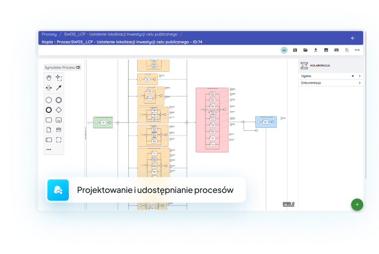 z wykorzystaniem zaawansowanych funkcji modelera diagramów/schematów procesów w standardzie BPMN 2.0 oraz na zarządzanie zgłoszeniami od pracowników urzędu, którzy mają dostęp do systemu
