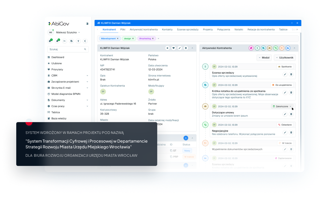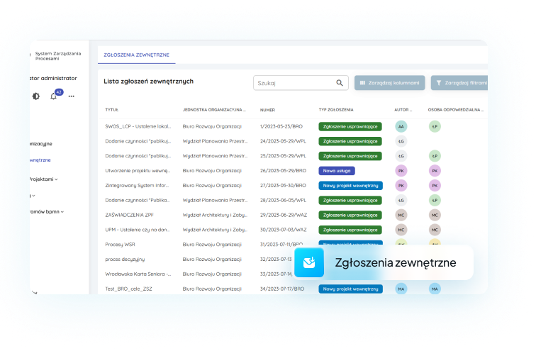 Pierwotnie system został przygotowany dla Biura Rozwoju Organizacji Urzędu Miasta Wrocław. To dedykowane narzędzie dla zespołów dbających o rozwój organizacji i realizujących działania wewnętrzne w ramach ustalonych procesów.